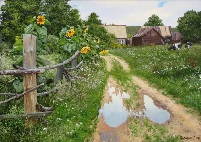 Художник Татьяна Черных из Белоруссии рисует удивительные картины в жанре пейзаж и натюрморт, соединяя в них такие стили, как реализм и импрессионизмом. Женщина черпает вдохновение из сельской глубинки и природы, а ее работы, написанные маслом на холсте, буквально пропитаны хорошо знакомыми всем деревенскими запахами и видами.