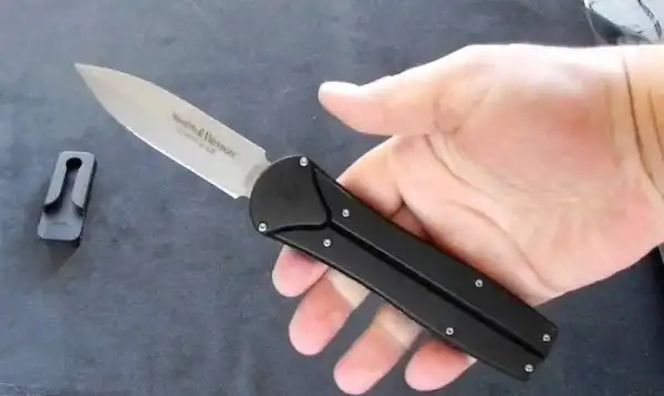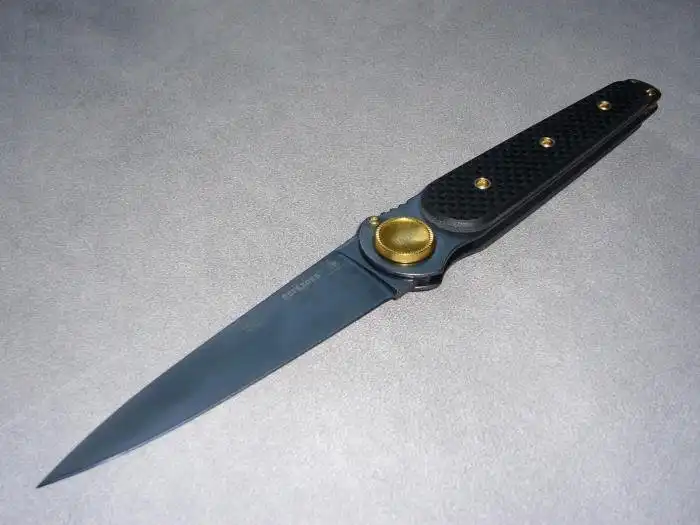 Еще один нож с вертикальным выбрасыванием лезвия по дуге из рукоятки. Создан был группой конструкторов в 2011 году. Имеет невероятно удобную рукоять, чего не скажешь о механизме выброса лезвия. Что действительно делает честь этому инструменту, прекрасное лезвие, которое способно справится с большинство поставленных задач.