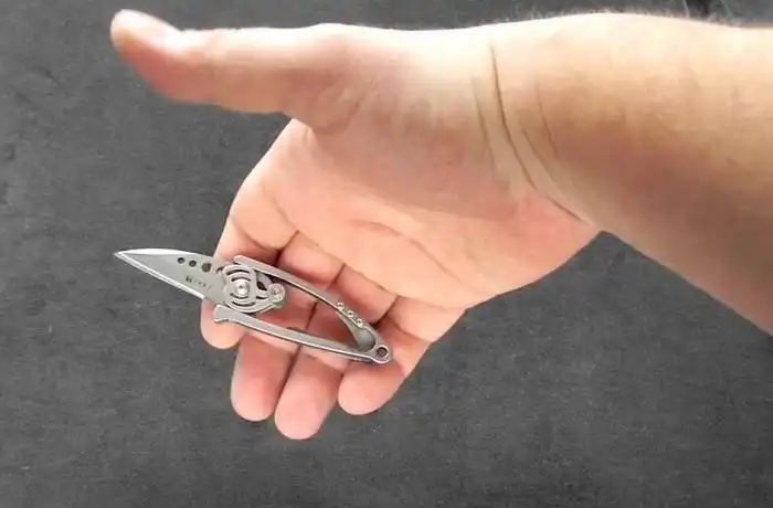 Этот нож был создан в 2009 году дизайнером Полом Акселем. Нож одержал победу сразу в нескольких профильных конкурсах. У него забавный механизм выброса лезвия. Так есть ножи, у которых после нажатия кнопки лезвие выходит из ручки.