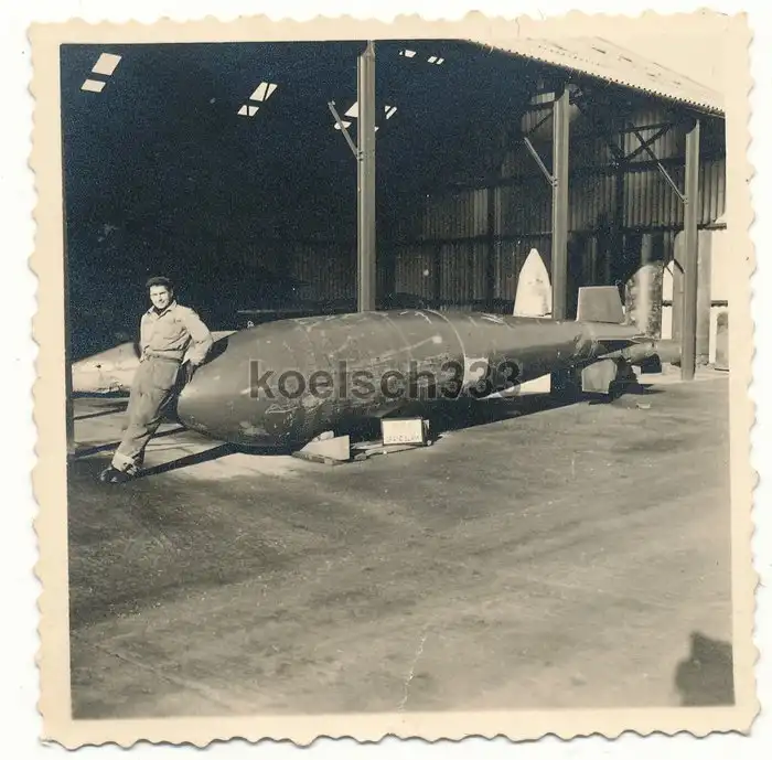 Британский аэродромный техник у авиабомбы "Толлбой". Бетонобойная мощная бомба, весом в 5 тонн.