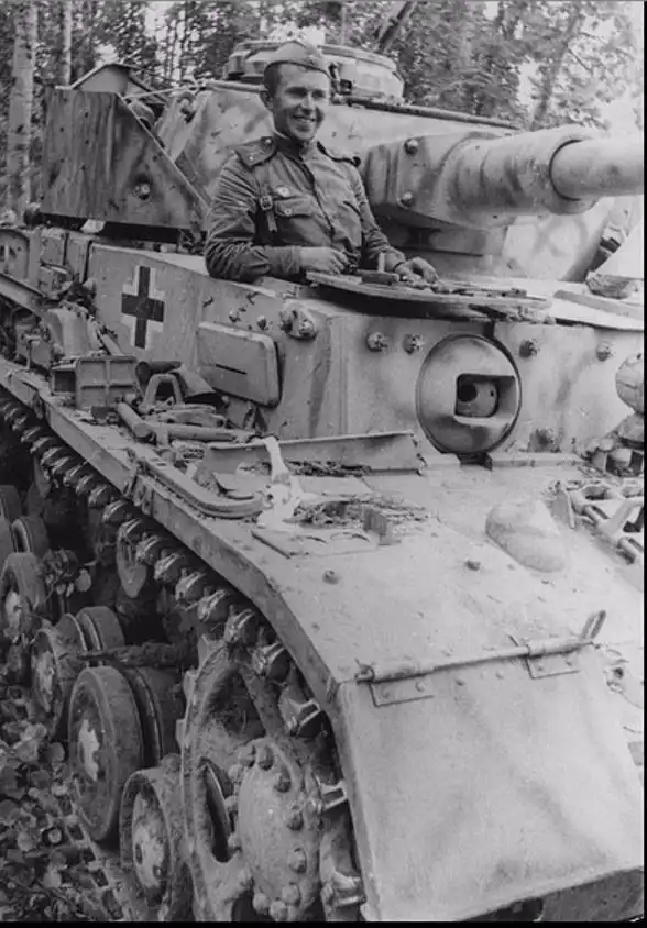 Капитан Красной армии в брошенном танке Pz.Kpfw.IV.