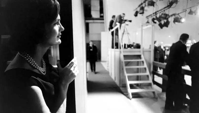 Жаклин Кеннеди наблюдает за дебатами мужа с вице-президентом Ричардом Никсоном, 1960 год.