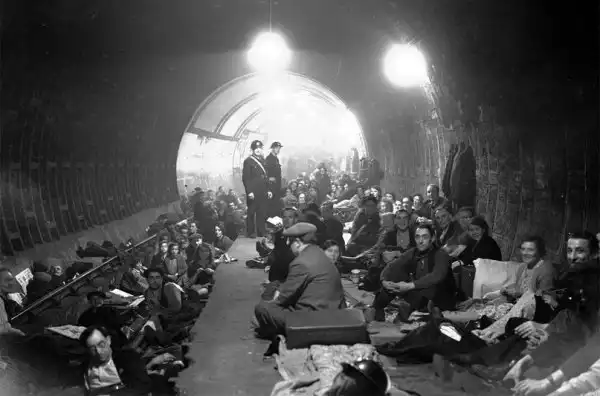 Жители Лондона укрываются в туннелях метро на станции Aldwych от бомбардировок немецкой авиации, 8 октября 1940 года.