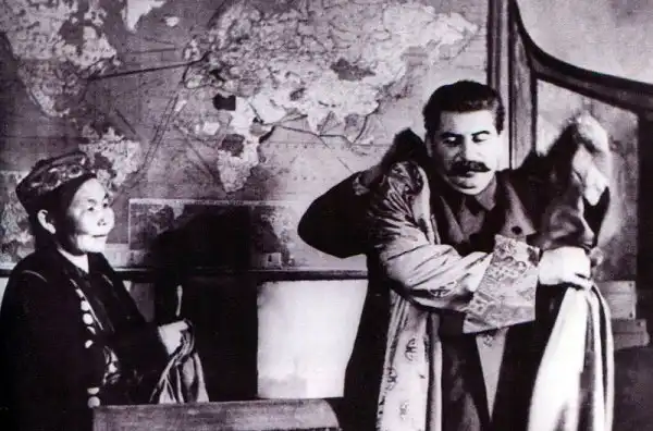 Фотография, как ни странно, настоящая. Сделана в 1936 году на встрече с бурятской делегацией.