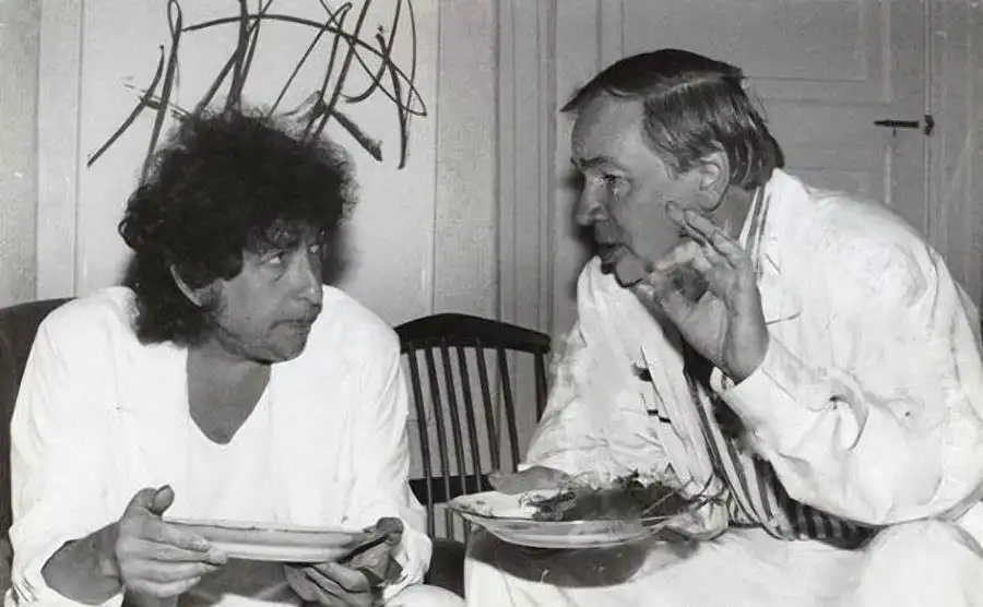 Боб Дилан и Андрей Вознесенский в Переделкино. 1985 год.