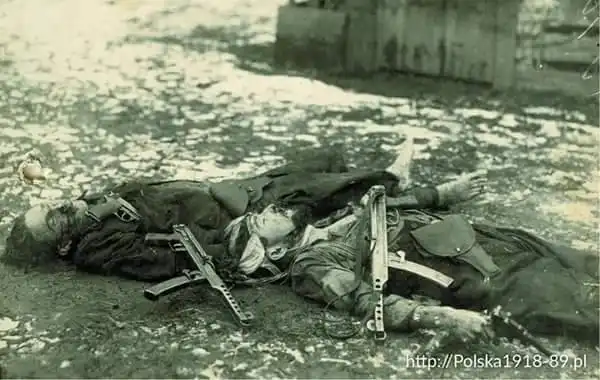 Бойцы польского антикоммунистического отряда Молния, погибшие в бою с сотрудниками госбезопасности, 1946 год.