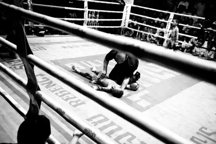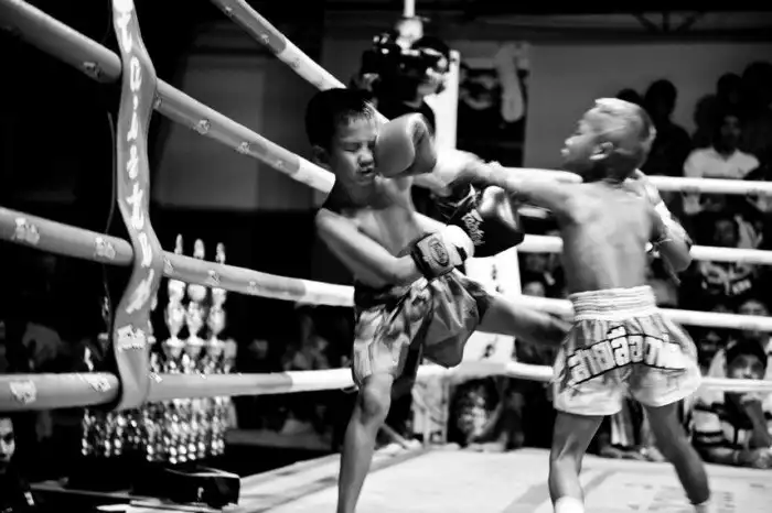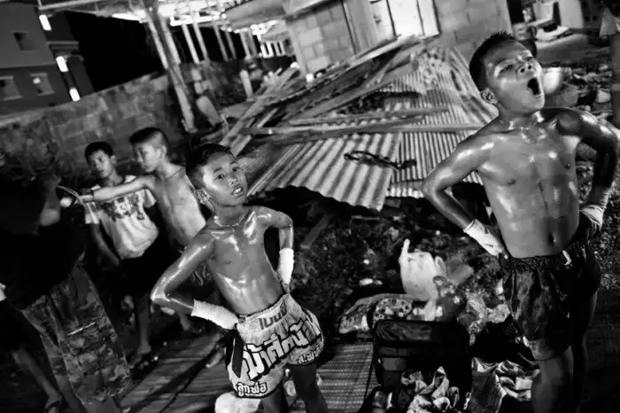 В 2011 году Сандра Хойн проводила отпуск в Таиланде. Недалеко от Бангкока она случайно оказалась на турнире по тайскому боксу, одному из самых сложных и самых жестоких боевых искусств в мире. Тайский бокс (муай тай) называют «боем восьми конечностей», потому что удары можно наносить кулаками, ступнями, голенями, локтями и коленями. Конечно, бойцы нередко получают серьёзные травмы. Но фотографа поразил не спорт, а спортсмены. Турниры муай тай – это развлечение для туристов и источник дохода для многих тайцев, которые выставляют своих детей на ринг, делая крупные ставки. Минимального возраста для боксёров нет.