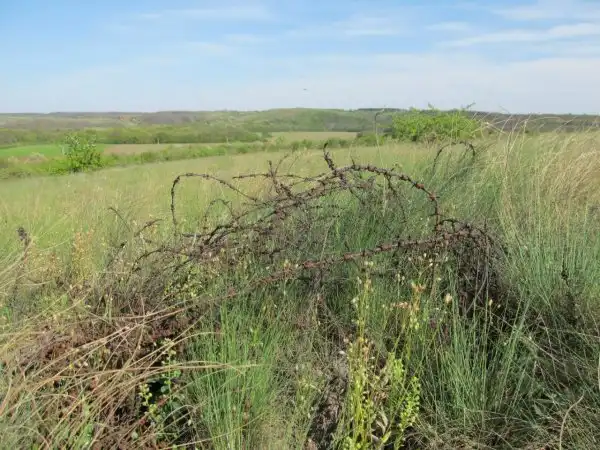 Вечная память павшим. На фото поле на Миус-фронте. До сих пор можно встретить колючую проволоку немецких заграждений. Эхо войны.