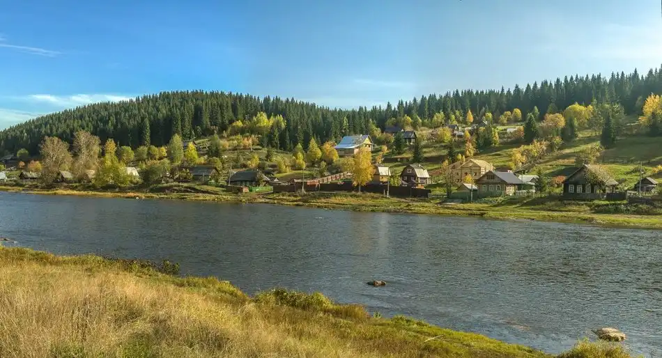 Река Усьва в черте одноимённого посёлка, откуда начинается пешая часть маршрута к Усьвинским столбам - главной цели моего путешествия...