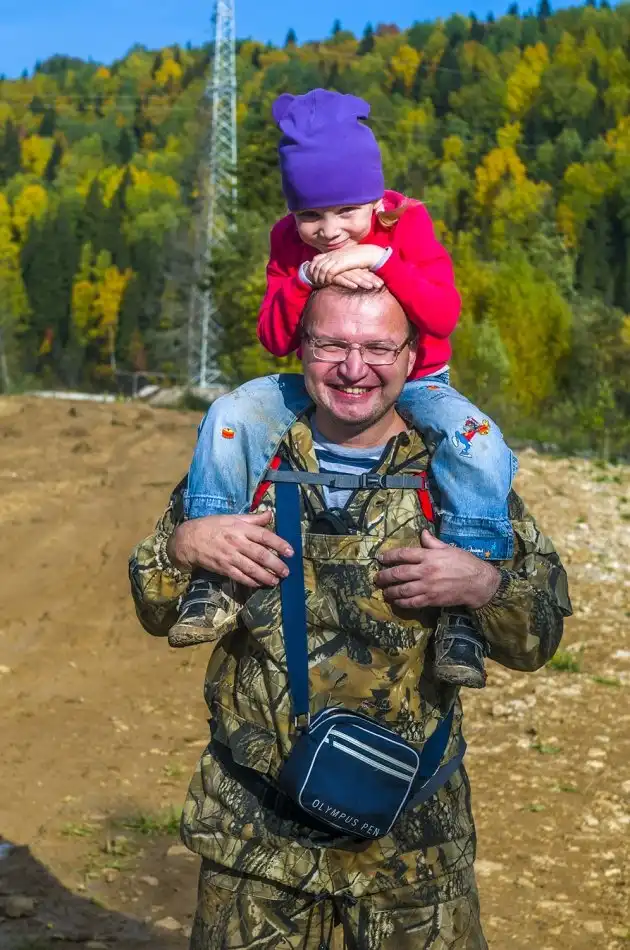 На столбы идут тоже много народу, среди которых встречаются и вот такие очаровашки, едущие на папе...