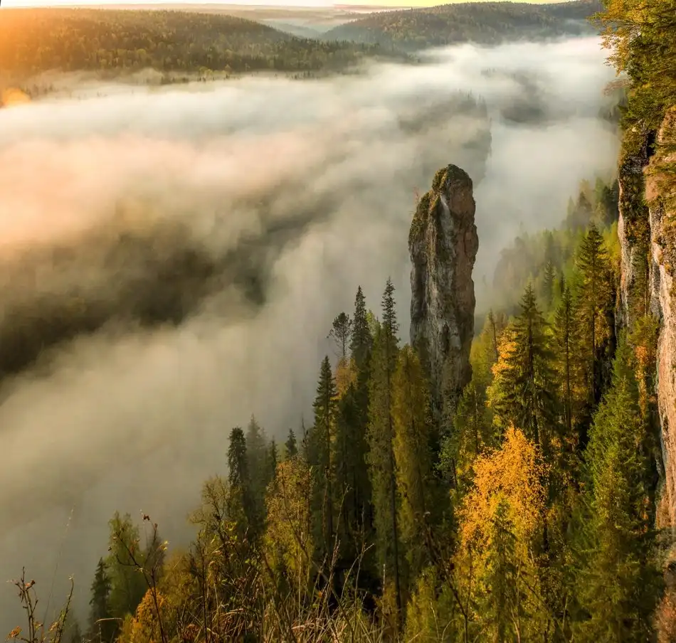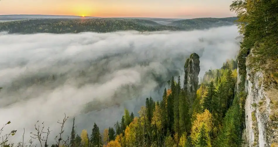 Мне очень нравится приезжать в новое место перед рассветом, когда начинаешь движение в темноте и постепенно, с рассветом, проявляется окружающие пейзажи нового места. Рассвет на реке Чусовой...