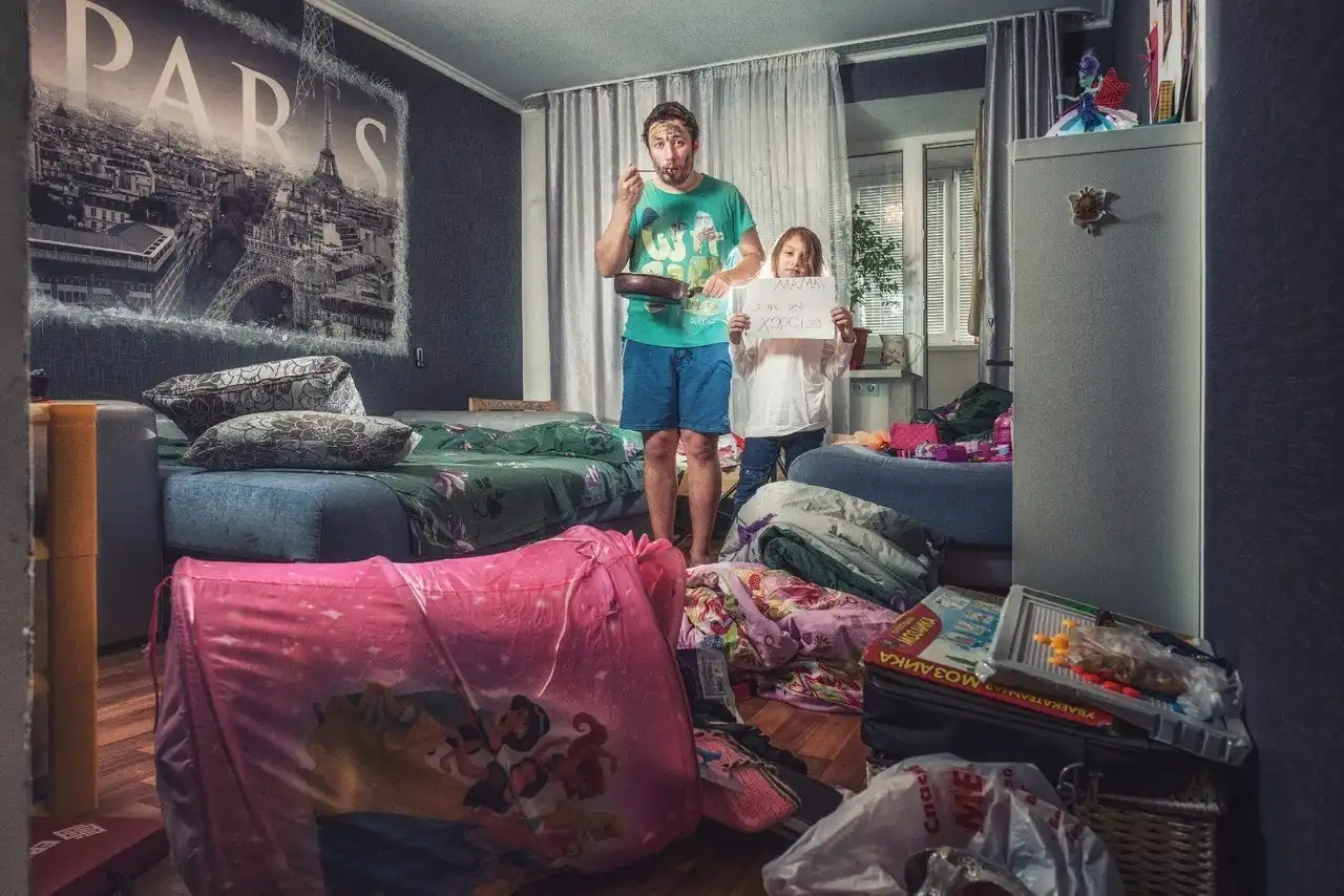Милый фотопроект, в котором отец семейства отправлял супруге, находящейся в командировке, каждый день по одной фотографии, на которых уверял, что у них с дочерью "Всё хорошо"