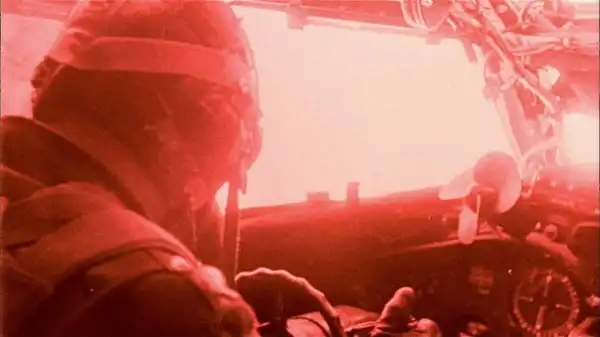 Кабина турбовинтового стратегического бомбардировщика-ракетоносца Ту-95В в момент подрыва термоядерной авиационной бомбы «Кузькина мать» на расстоянии 39 километров от эпицентра. 30 октября 1961 года.