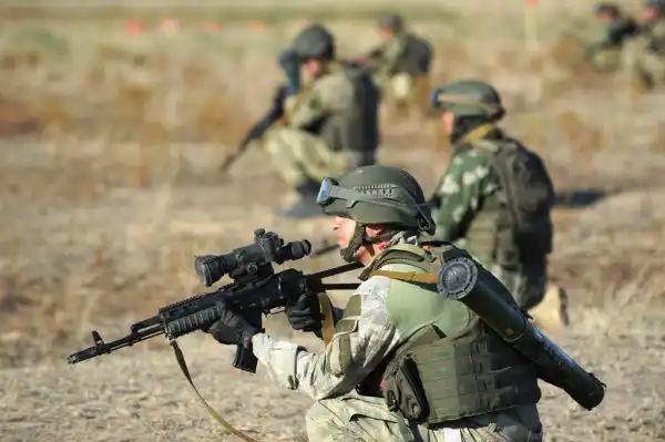 Бойцы 38-й десантно-штурмовой миротворческой бригады ВС РК на учениях Кабылан Жолы-2015.
