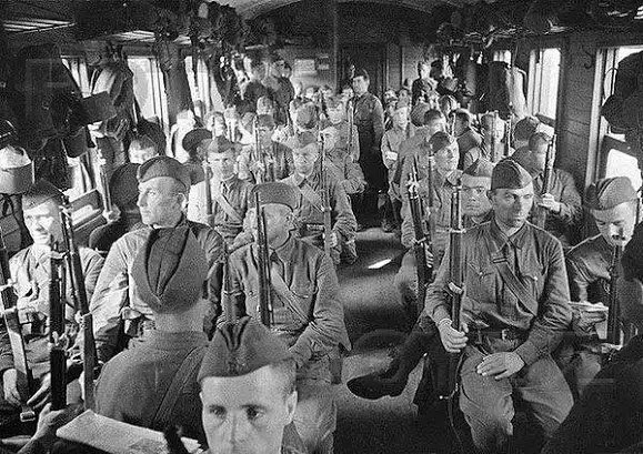 Бойцы разведывательной роты 12-й особой Краснознамённой бригады морской пехоты КСФ направляются с заданием на полустров Средний. Северный фронт, 29 июня 1942 года.