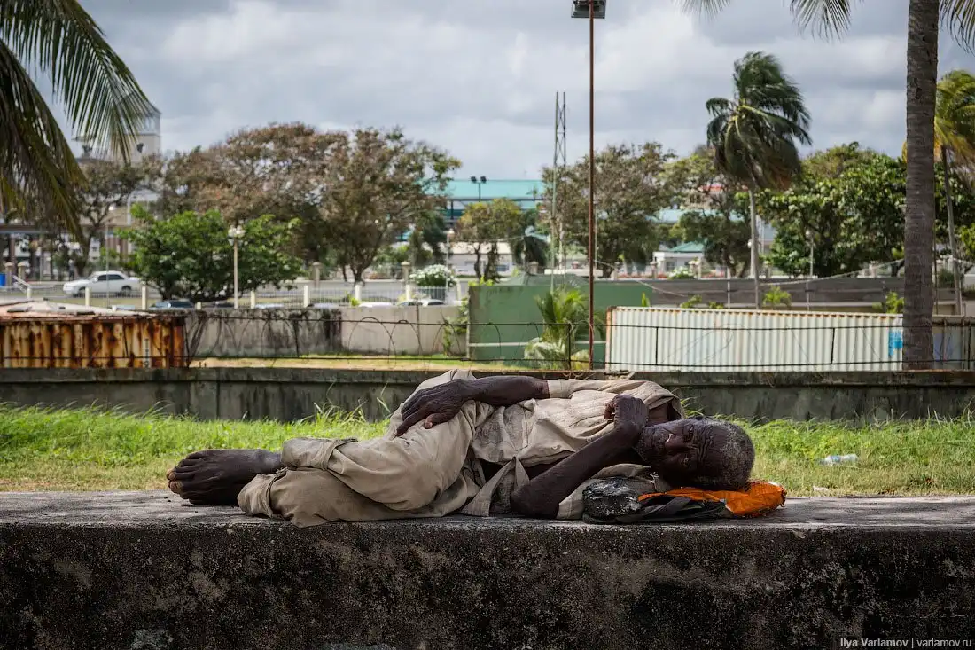 В городе очень много бомжей. Большинство обитают прямо в гамаках под деревьями, так как климат позволяет обходиться без жилища.