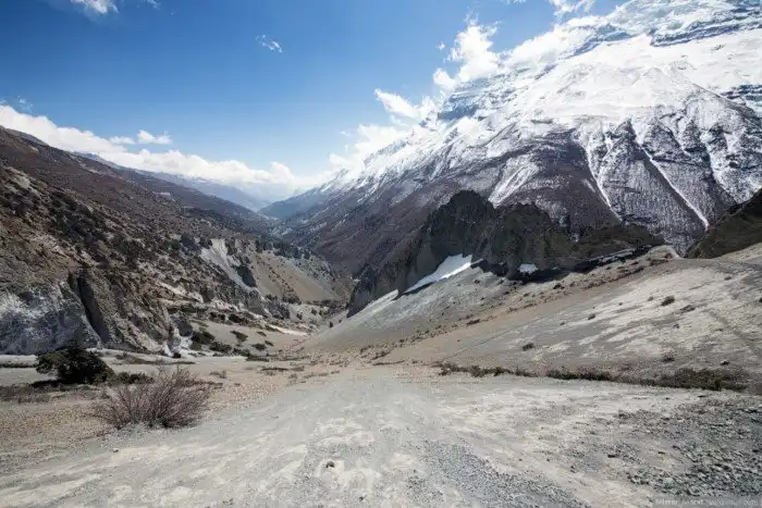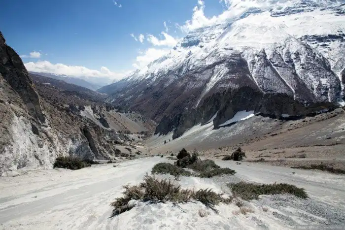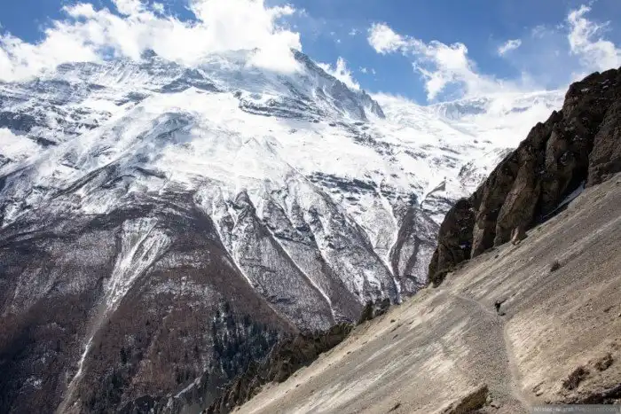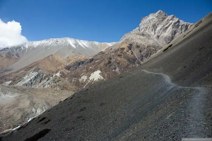 Над гималайскими просторами грозно нависает семитысячная стена Тиличо — именно у её подножия, на высоте 5010 метров, находится самое высокогорное озеро мира с одноименным названием. Все путеводители пишут, что дорога туда является самой опасной и непредсказуемой на всем треке, и начинать путь стоит строго отдохнувшим и полным сил, иначе любая ошибка станет фатальной. Звучит интригующе? Скоро я понял, почему все в один голос называют путь опасным.