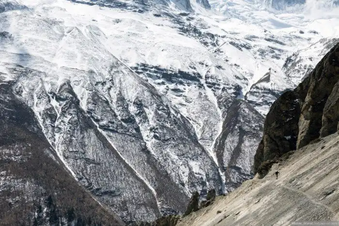 По возможности, лучше выключить музыку, чтобы прислушиваться к тревожным звукам, и часто опираться на трекинговые палки. Гималаям всё равно, чью жизнь забирать.