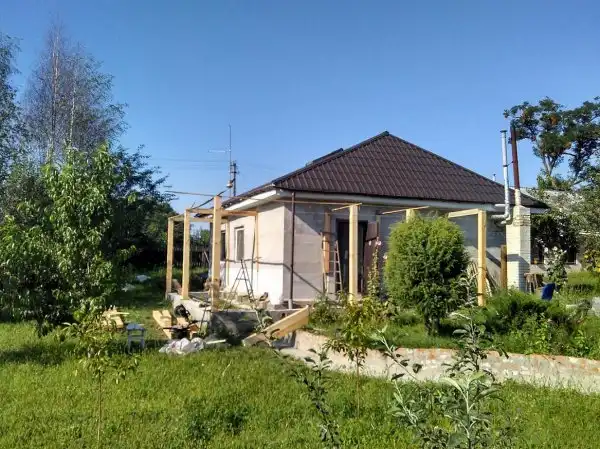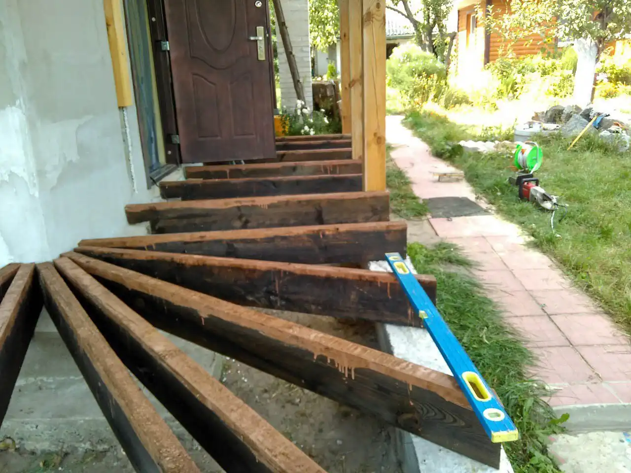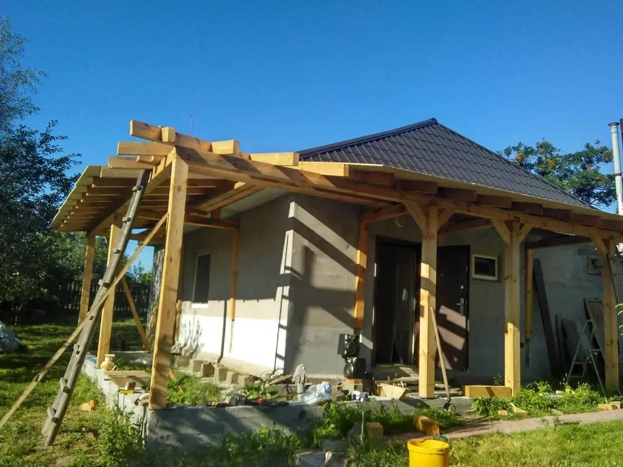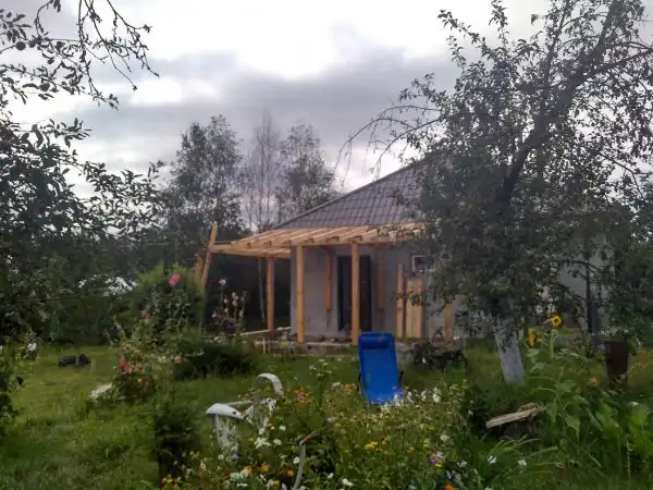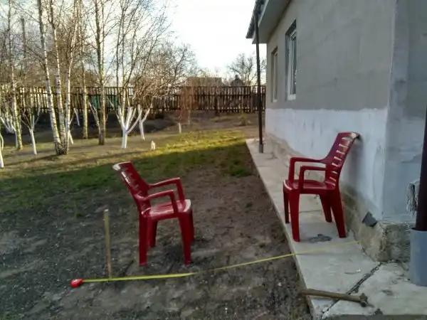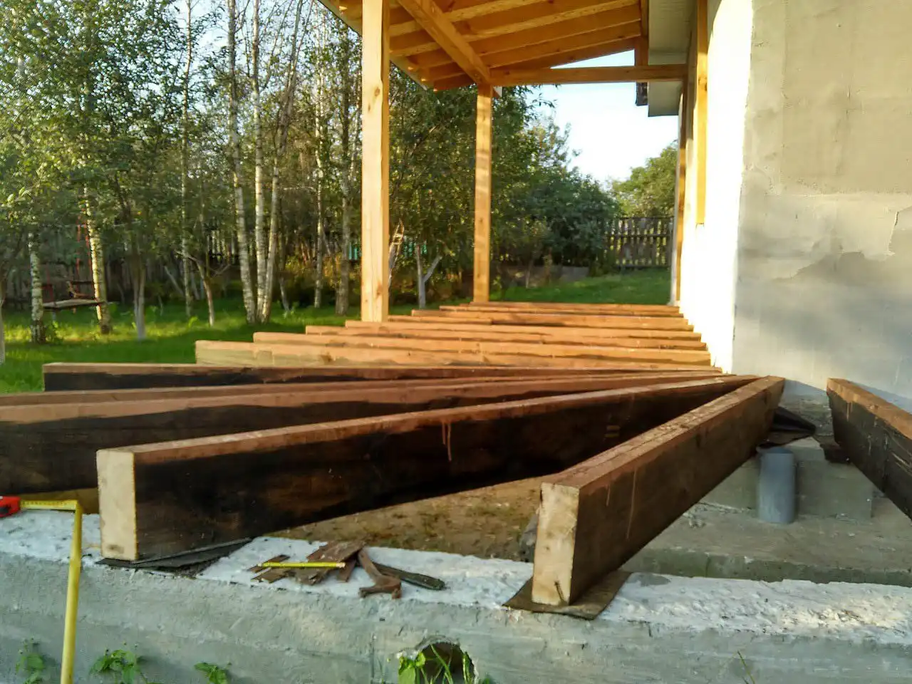 Все делал с отцом, строил этим летом, затраты приведу в баксах, чтобы не морочиться с переводом валютой. Дом построен давно и после пожара, многие стены кривые – виляют, так что пришлось постараться сделать ровную террасу.