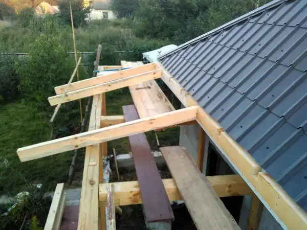 Так как ширина террасы отличалась то и склоны крыши были под разным углом, что бы они сошлись с одной стороны пришлось стропила зарезать (топить). Рассчитывал в СкетчАппе