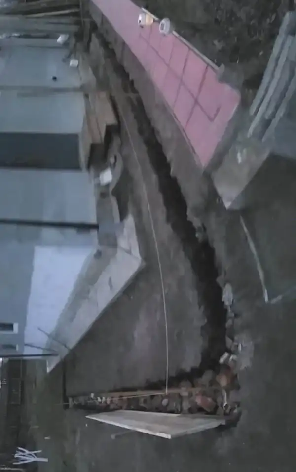 Выкопал траншею и набросал на самый низ бой и камни (экономил на кубах бетона)