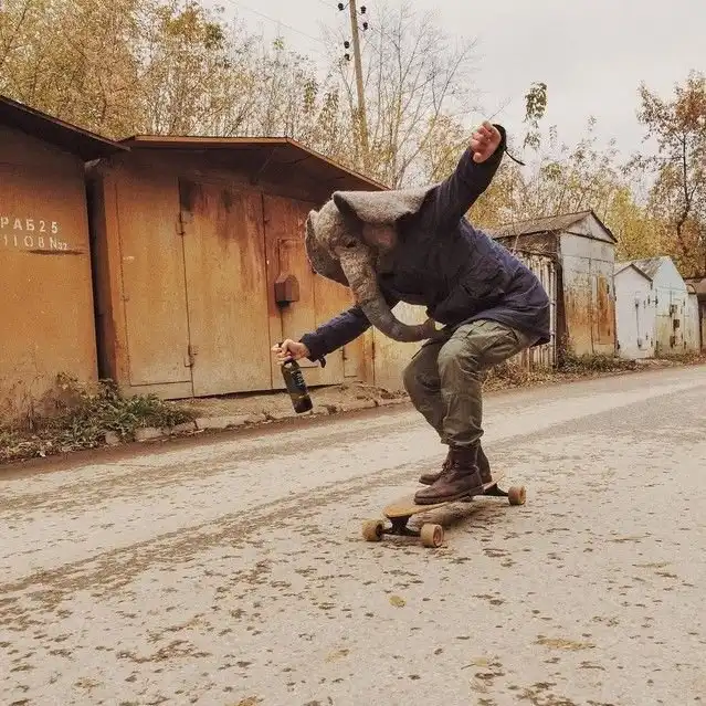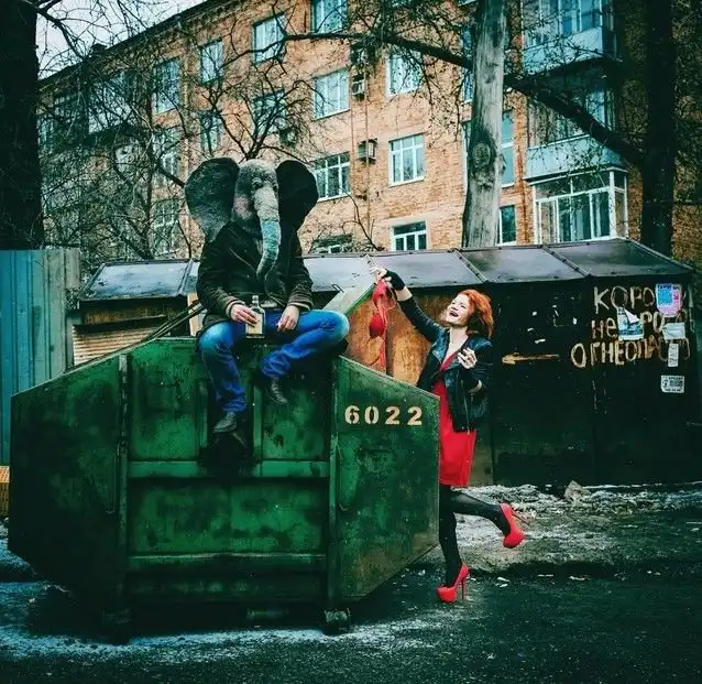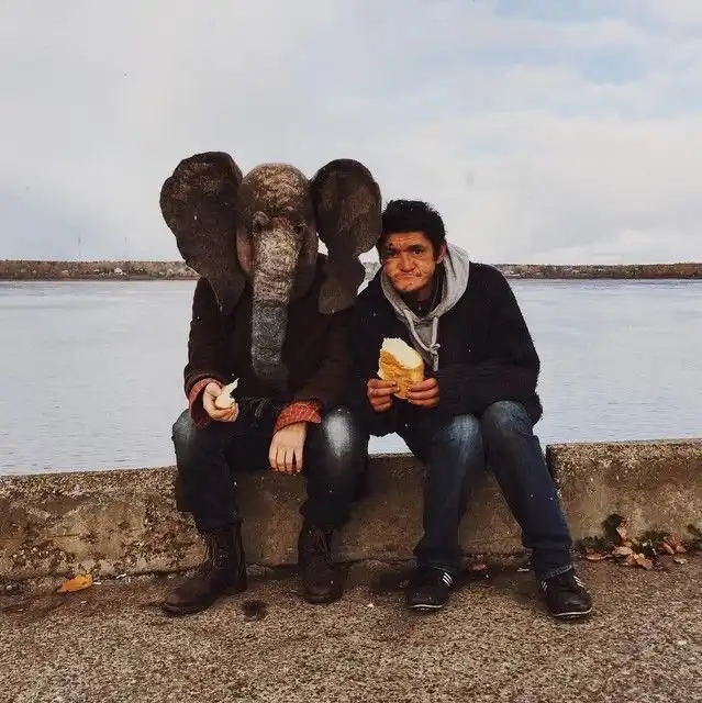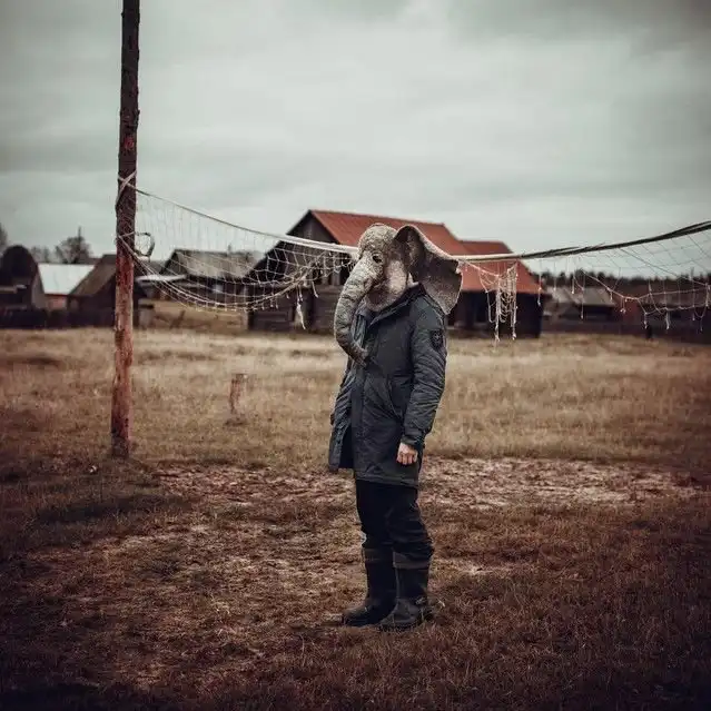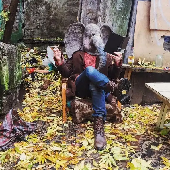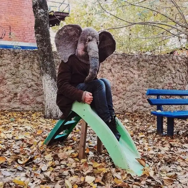 В социальной сети Instagram есть довольно интересный аккаунт, хозяин которого регулярно публикует грустные фотографии, сделанные на просторах России. На всех фото на мужчине надета маска слона, а подписи к снимкам порой очень пессимистичны и трогают за душу. Кстати, название аккаунта переводится, как "Пьяный хобот".