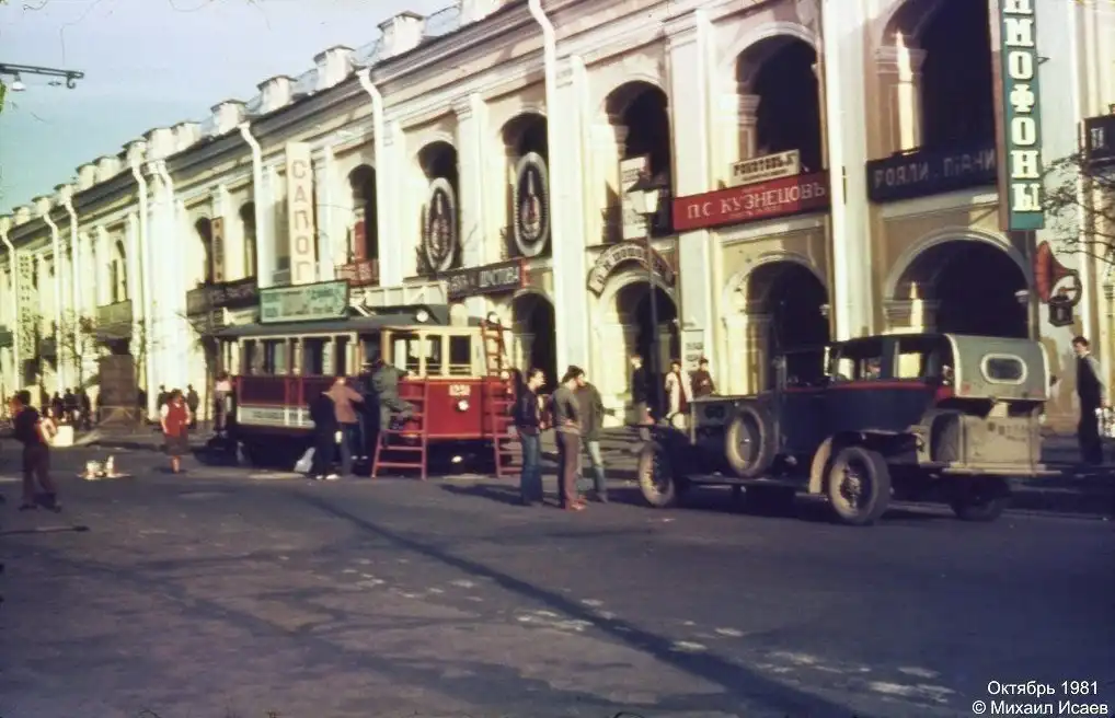 Съемки фильма "Красные колокола" на Садовой улице в Ленинграде, 1981:
