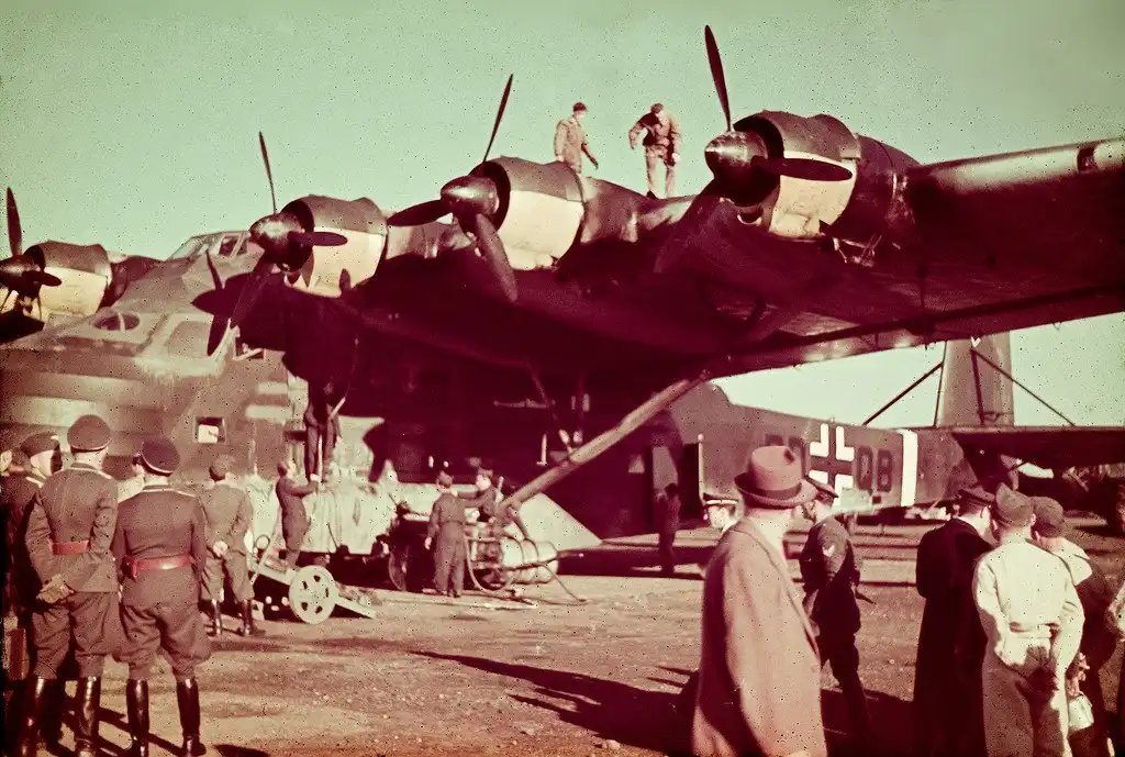 Немецкий самолёт Messerschmitt Me 323 "Гигант" в Риме, около 1942 года: