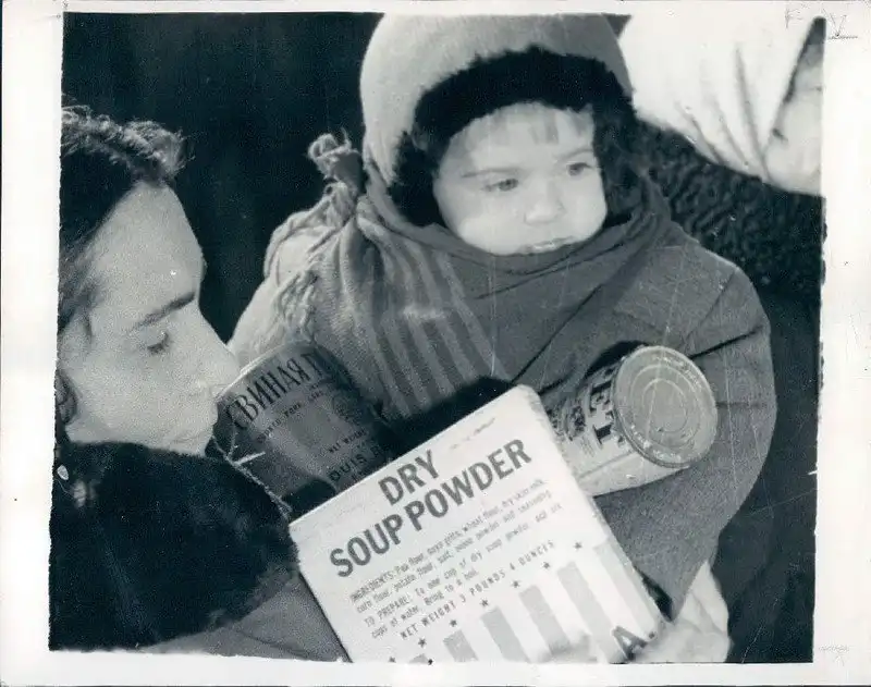 Мать покупает ленд-лизовые продукты в продовольственном магазина Киева