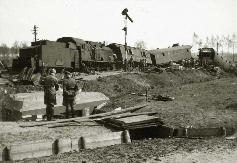 Бронепоезд вермахта № 1 сошедший с рельс после подрыва на мине, Голландия май 1940 г.