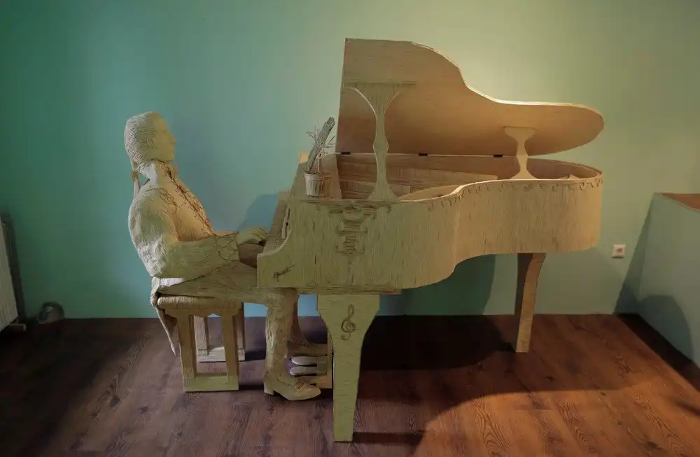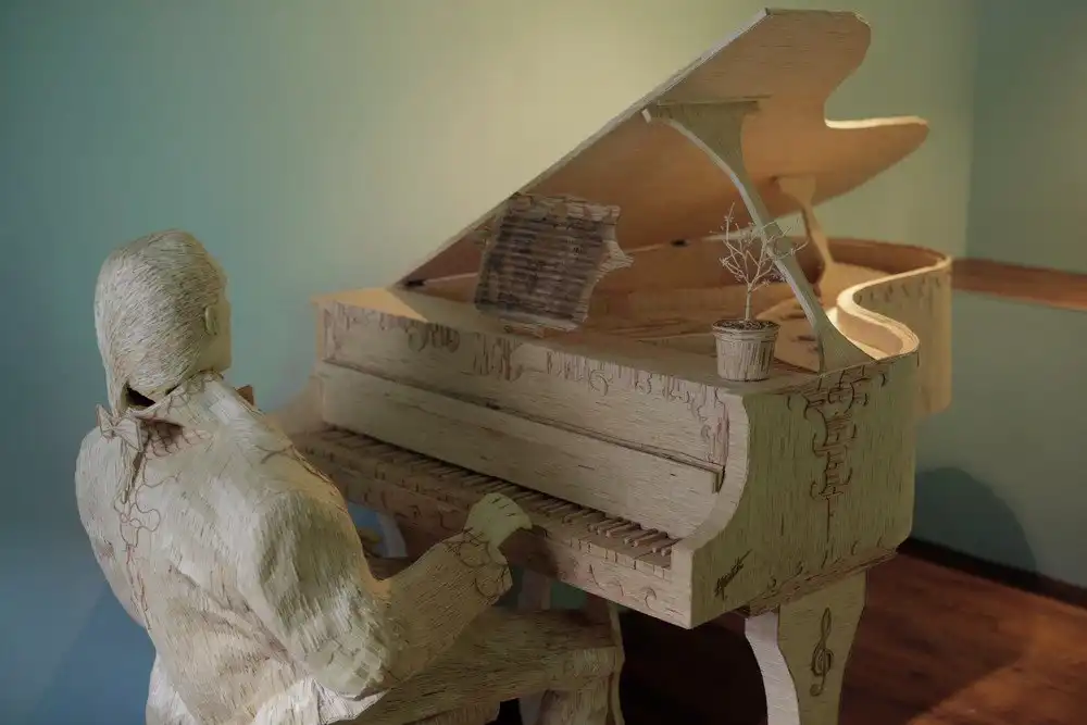 Tomislav Horvat из Подтурена, Хорватия, сделал удивительную скульптуру пианиста в натуральную величину. На это ушло примерно 210 000 спичек, а весит она 100 килограмм.