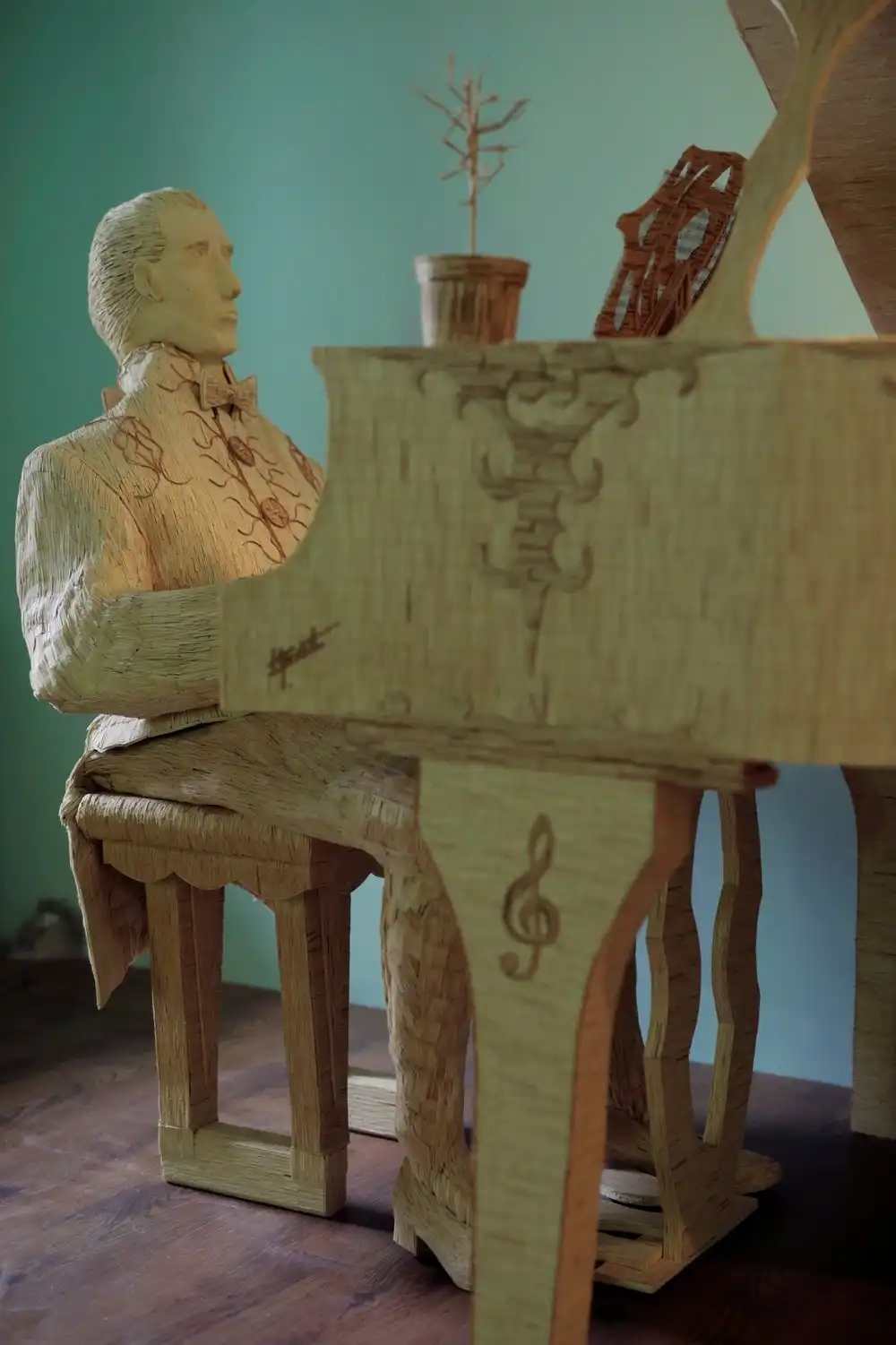 За последние 10 лет Tomislav Horvat построил много скульптур из спичек, но эта самая большая. На создание пианиста он потратил 30 месяцев.