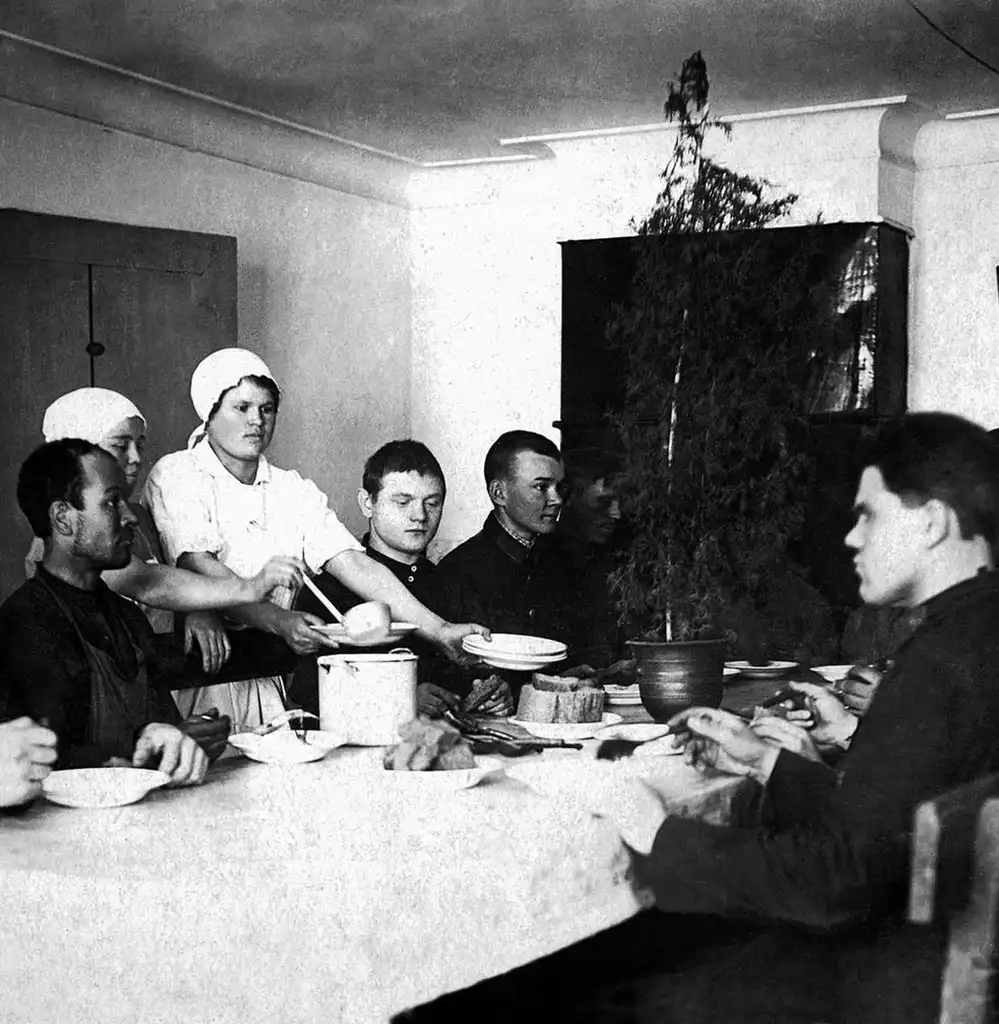 Красноармейцы овладевают мастерством сапожника и шорника. 1930-е.