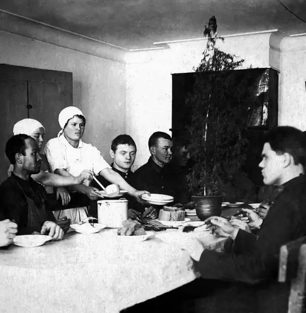 Палатка первостроителей Магнитогорска. Первая политинформация. 1930-е.