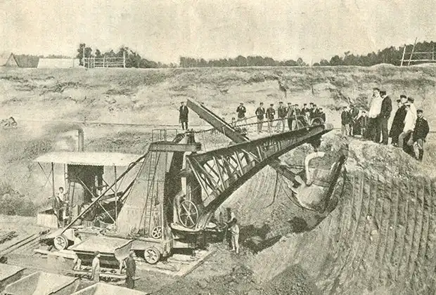 Землеройная машина на строительстве Московской окружной железной дороги, начало 20 века: