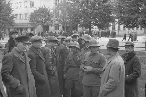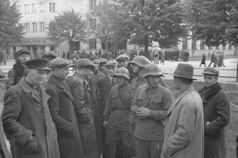 Военнослужащие РККА общаются с жителями Вильно. Сентябрь 1939 года