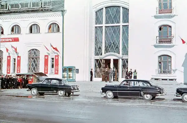 На днях на новгородском краеведческом ресурсе нашёл замечательный снимок вокзала 1960-х гг. К нему прилагался комментарий "Приезд, не помню, то ли Суслова, то ли Кузнецова". Может быть, кто-то из читателей сможет уточнить дату этого события, чтобы точно датировать фотографию?