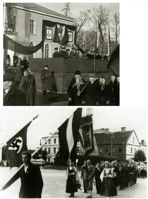 Нижний: Демострация в день Праздника Песни, г. Цесис, рейхскомиссариат Остланд 04.07.1943 г.