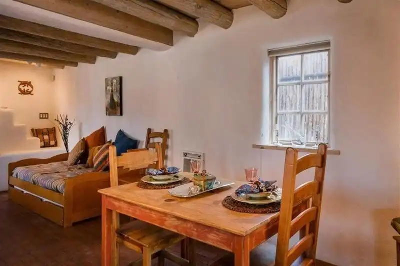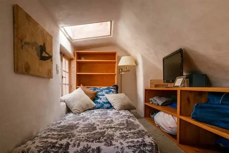 Однако если жилые дома пуэбло обычно были большими многоквартирными жилищами, в этом маленьком доме площадью 47,4 кв. метра поместилась только одна спальня.