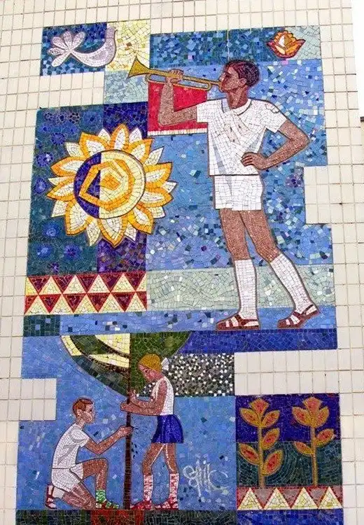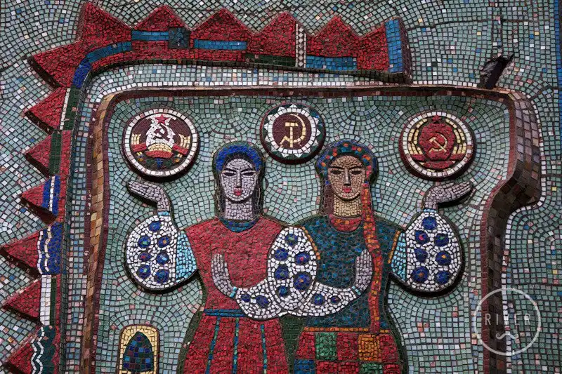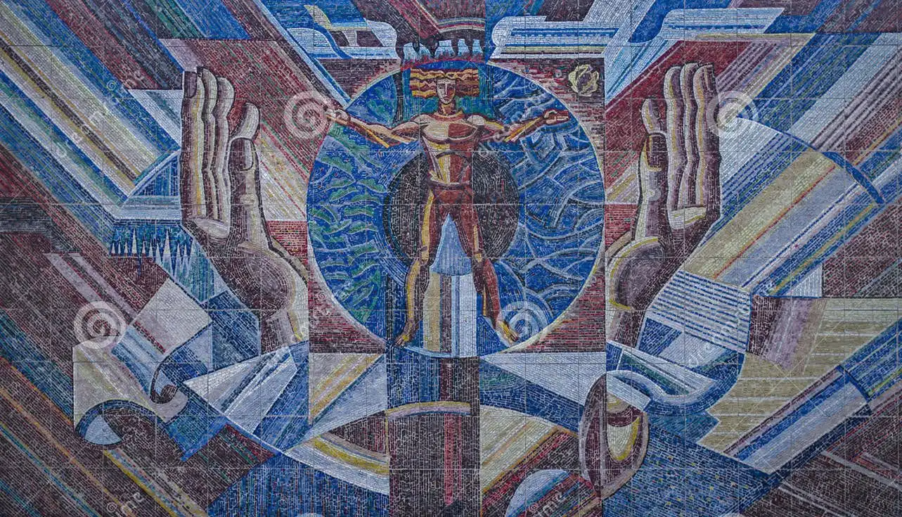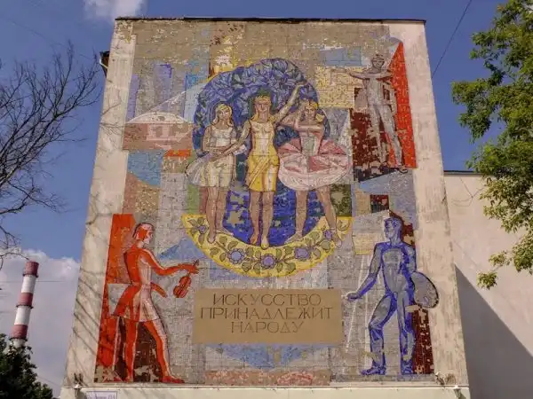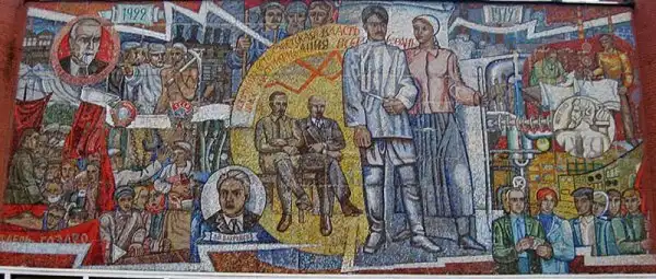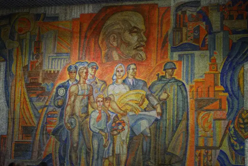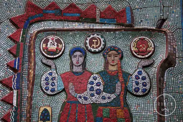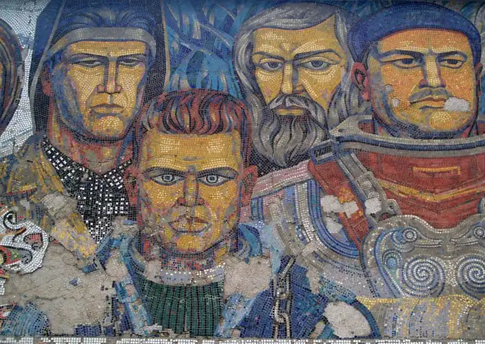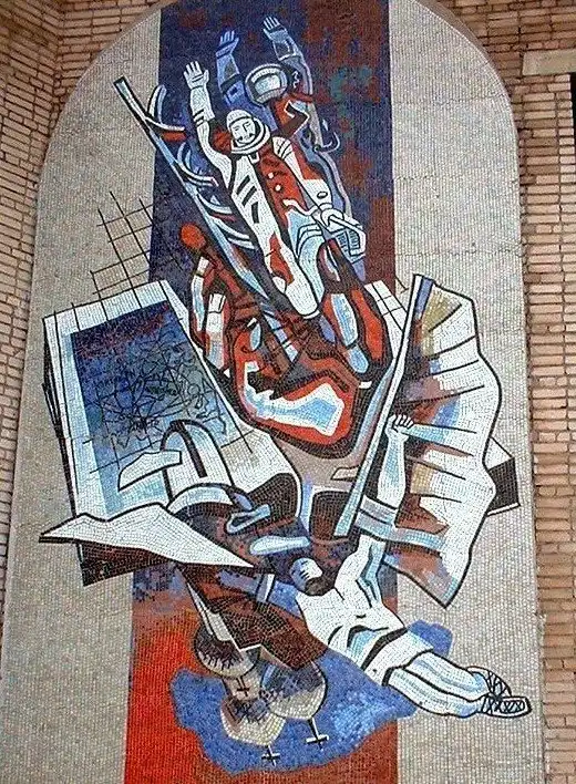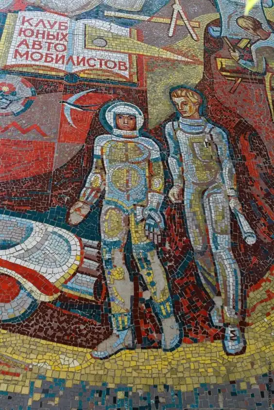 Многие мозаики служили мощным средством пропаганды. Они были наружной рекламой, чем-то вроде билбордов. На них часто рисовали военные победы, космические достижения, лозунги, счастливых рабочих и крестьян