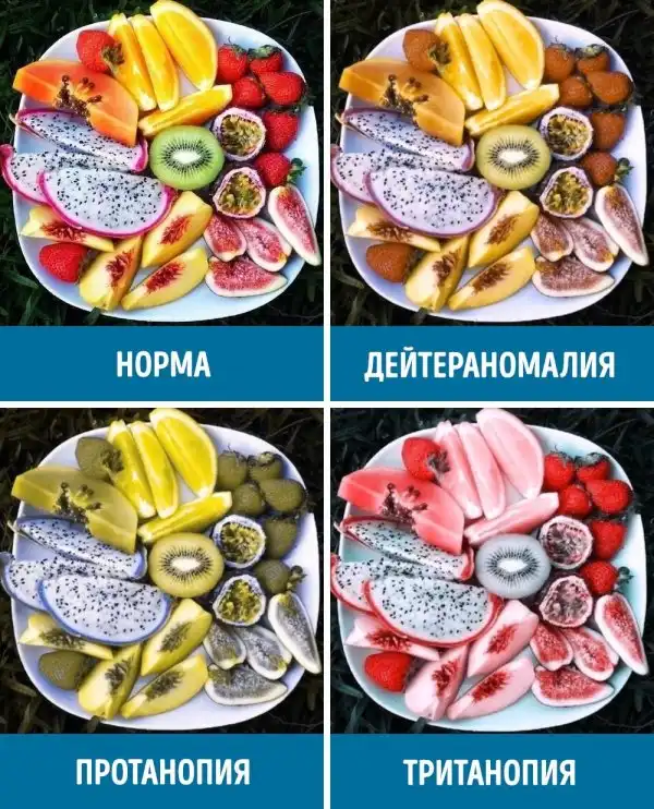 Как видят мир люди с разными формами дальтонизма? Оказалось, далеко не все они видят его в черно-белом цвете. Существует несколько типов нарушенного цветовосприятия, вот наиболее распространенные.