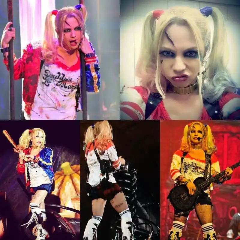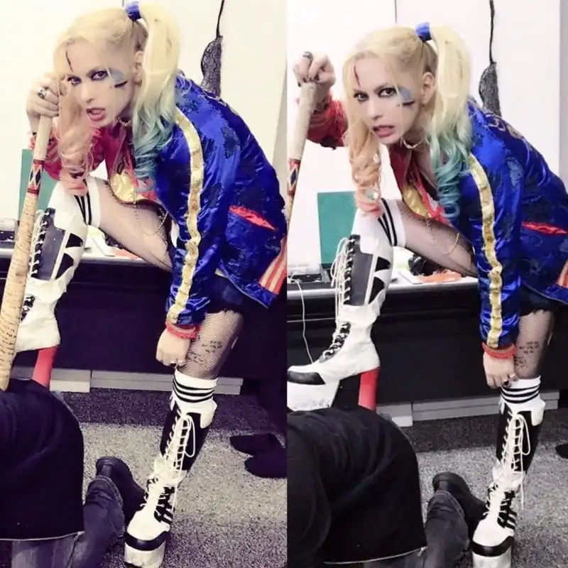 Знаменитости каждый год пытаются придумать что-нибудь эдакое и нарядится неожиданно для своих фанатов. Ничего толкового в 2016 году я не увидел, кроме одного варианта - костюма Харли Квинн из "Отряда самоубийц" на лидере японской рок-группы.