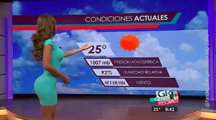 Прогноз погоды на новостном канале мексиканского города Монтеррей пользуется невероятной популярностью благодаря очаровательной ведущей. 25-летняя Янет Гарсия (Yanet Garcia) покорила зрителей своей красотой и фигурой. Выпуски прогнозов погоды с участием Янет бьют все рейтинги, при этом их смотрят даже те, кто не знает испанского языка.