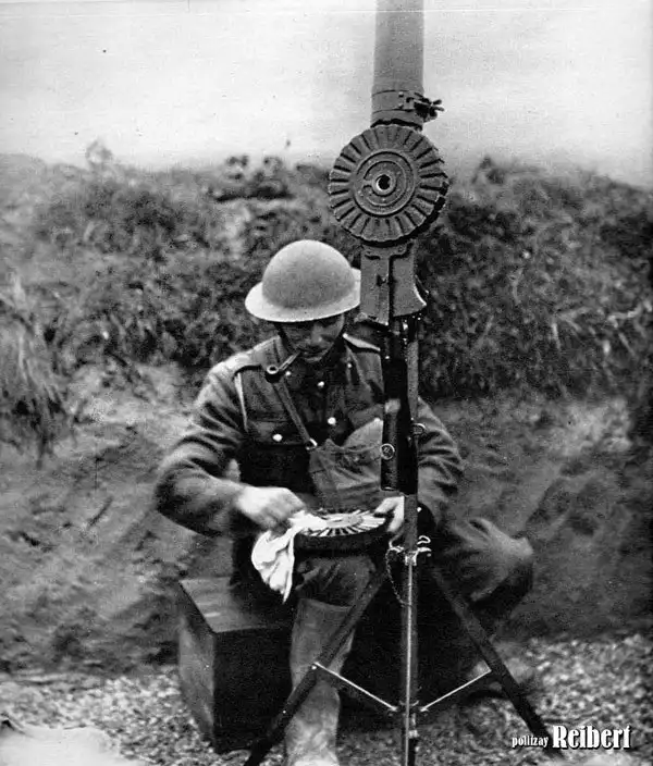 Британский солдат у пулемета Льюиса,установленного на зенитную стойку.1940 год