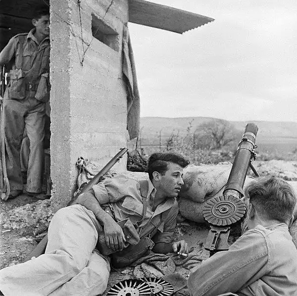 Израильские солдаты с пулеметом системы Льюиса на позициях, 1948 г.