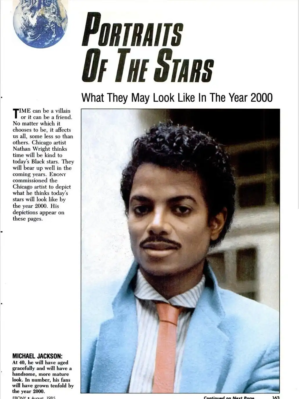 В 1985 году журнал Ebony предположил, как будет выглядеть Майкл Джексон в 2000 году: "В свои 40 лет Майкл будет элегантно стареть, он станет выглядеть более зрелым и привлекательным. А число его фанатов увеличится в 10 раз"