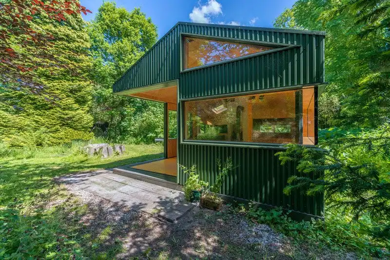 Постройка зеленого цвета спроектирована студией cc-studio таким образом, чтобы обнаруживать свое присутствие только в самый последний момент.