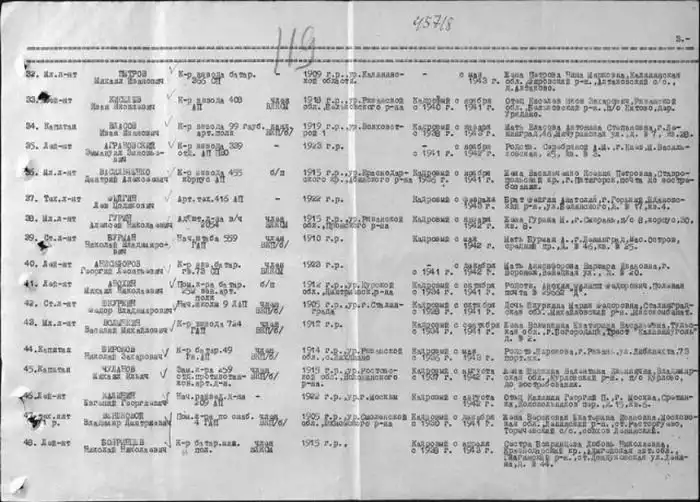 воевал в 23-й гв. сд в 1-й УА. В РККА с 1936 года. Пропал без вести в 1943. Полк в это время воевал под Старой Руссой в районе Залучья. В списке под номером 44.