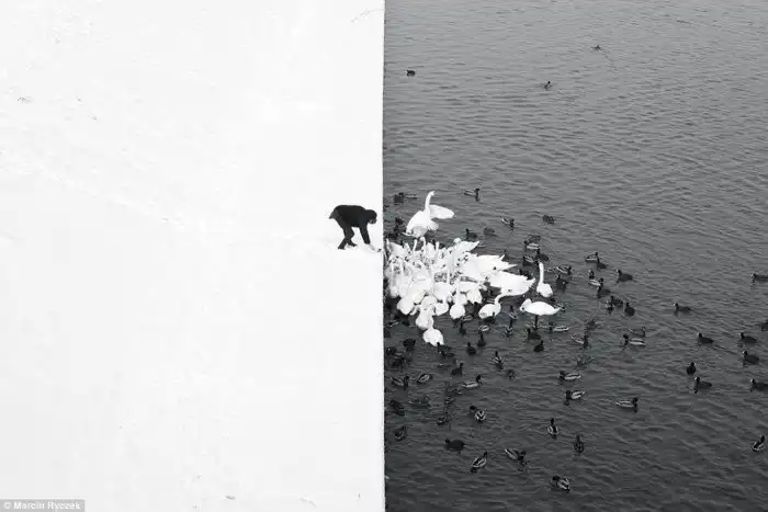 1-е место в категории «Монохромная фотография». Лебеди и утки в Кракове. Фотограф: Marcin Ryczek.