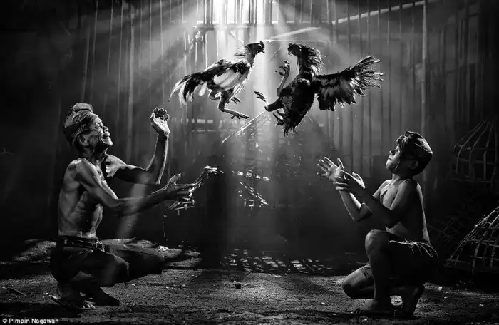 2-е место в категории «Монохромная фотография». Петушиные бои в Индонезии. Фотограф: Pimpin Nagawan.